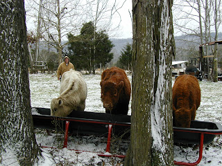 The ole wives tale came true today. If it clouds up over a frost, it will snow within the week. And it happened on Larry's birthday. Now the wind is blowing and it's cold. But as cattle barons we still have to feed the stock. Happy Birthday to my honey, and many more. I love you.